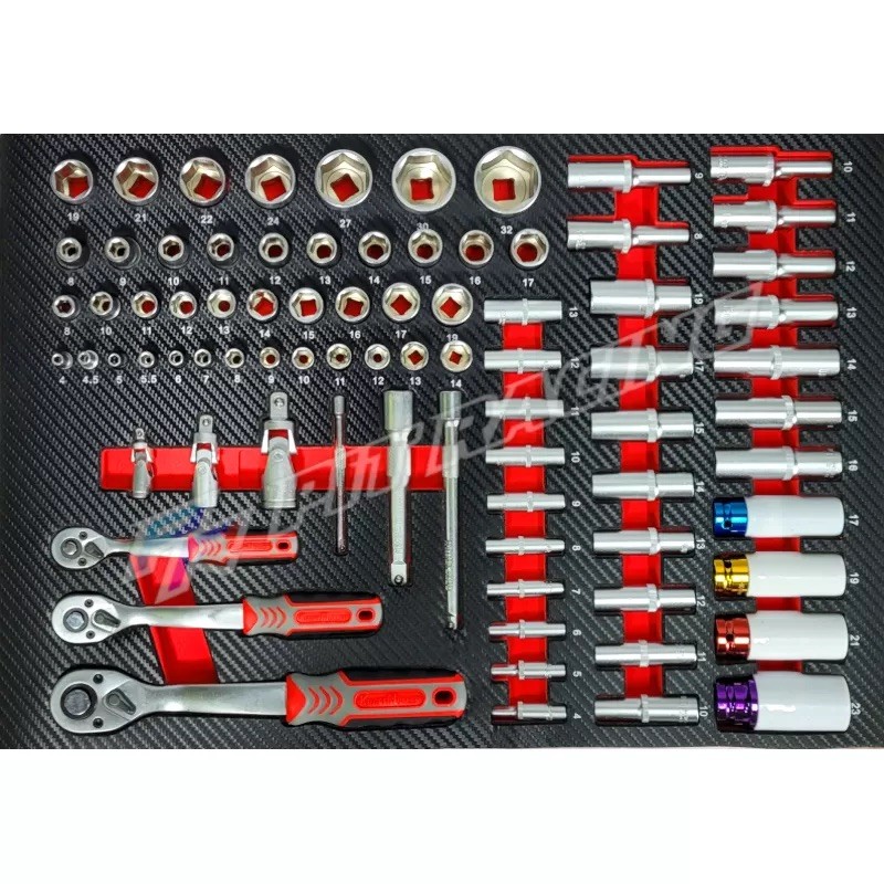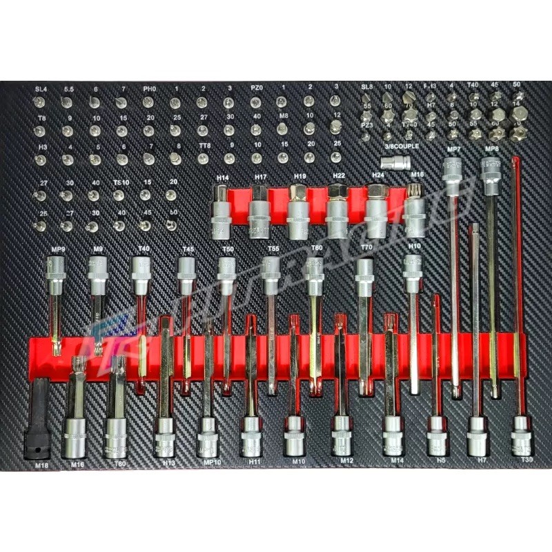 Composée de 9 tiroirs dont 7 tiroirs remplis d’outils comprenant 591 pièces