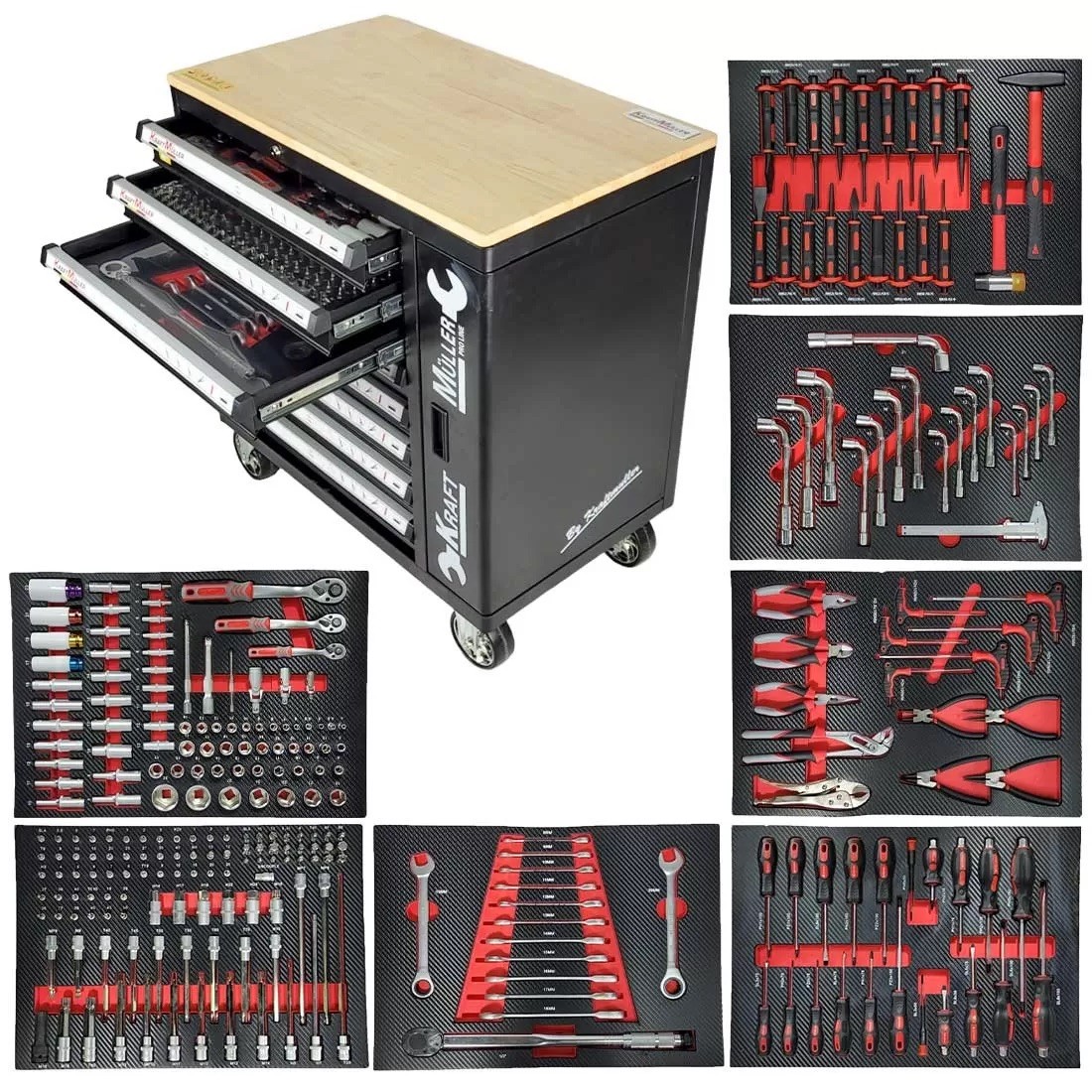 Servante d’outils professionnels plateau bois complète Kraft Müller Nouveau modèle